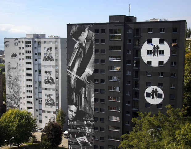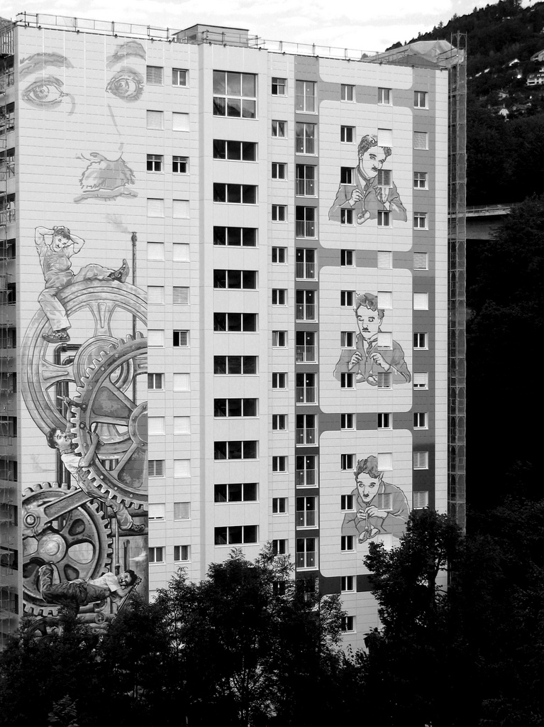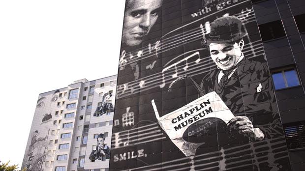 But the local authorities went one step beyond refurbishing these towers; they decided to install Europe’s largest frescoes and pay tribute to Charlie Chaplin, who spent the latter part of his life in the town.