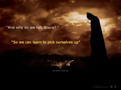 “And why do we fall, Bruce? So we can learn to pick ourselves up”