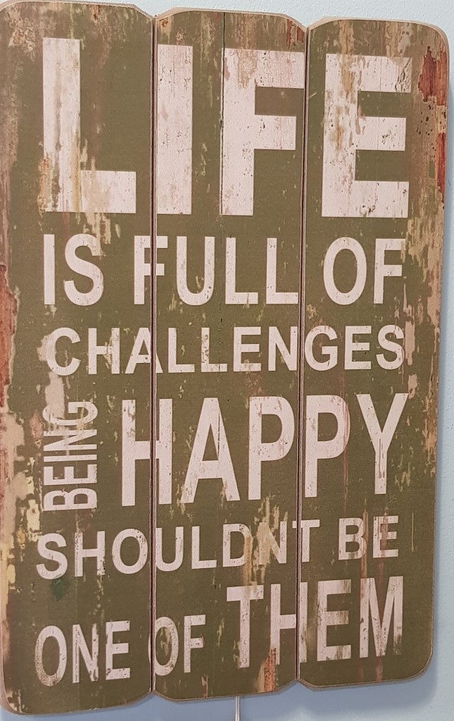 So this sign should make me smile, nod and give me the pleasure of having my cognitive biases confirmed. Except, recently, I’ve been finding happiness a more difficult gift both to give and to receive.
