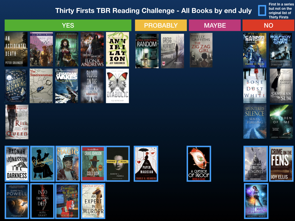 This year I’ve decided to tackle my TBR pile by reading thirty books from it that are the first in a series and assess my eagerness to read the rest of the series in terms of Yes / Probably / Maybe / No.