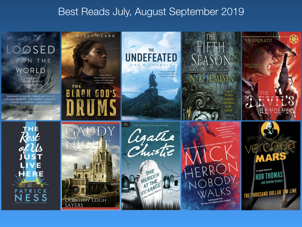July through September was an unusual quarter because all of the forty-four books I read were genre books. No mainstream books pushed their way to the top of my TBR pile. Instead, I read widely in crime, horror, science fiction and urban fantasy. I’ve picked out the ten books I most enjoyed.