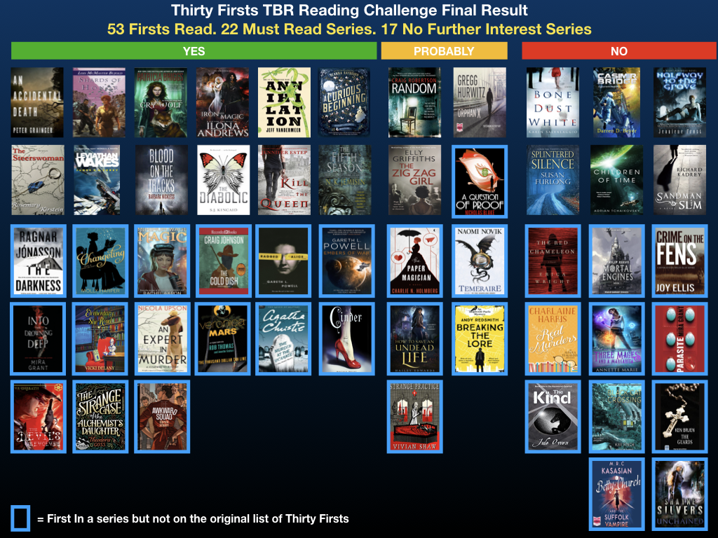 This year I decided to tackle my TBR pile by reading thirty books from it that are the first in a series and assess my eagerness to read the rest of the series in terms of Yes / Probably / Maybe / No.