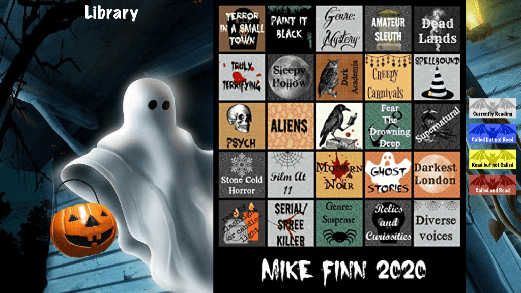 Halloween Bingo is a game where each player gets a bingo card of 25 squares, drawn from a total set of 61 squares. The game runs from 1st September to 31st October, with Bingo calls being made every couple of days. Players can read books for any square, whether or not it’s been called but can only claim as square as part of a bingo when they’ve completed a book that fits that square.