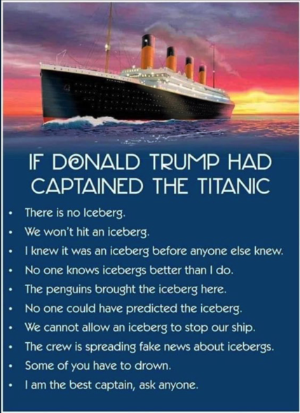 Time to vote for a new captain. Posted on 12/10/2020 by Mike Finn Sometimes, I wish that memes where not so accurate. There’s a point when they make you despair rather than smile. Right now, Trump is the captain and he can drown us all Tweets and memes won’t change that. Voting might. Rate this:Share this:Share Share on Reddit (Opens in new window) Reddit Share on X (Opens in new window) X Share on Facebook (Opens in new window) Facebook Like Loading...