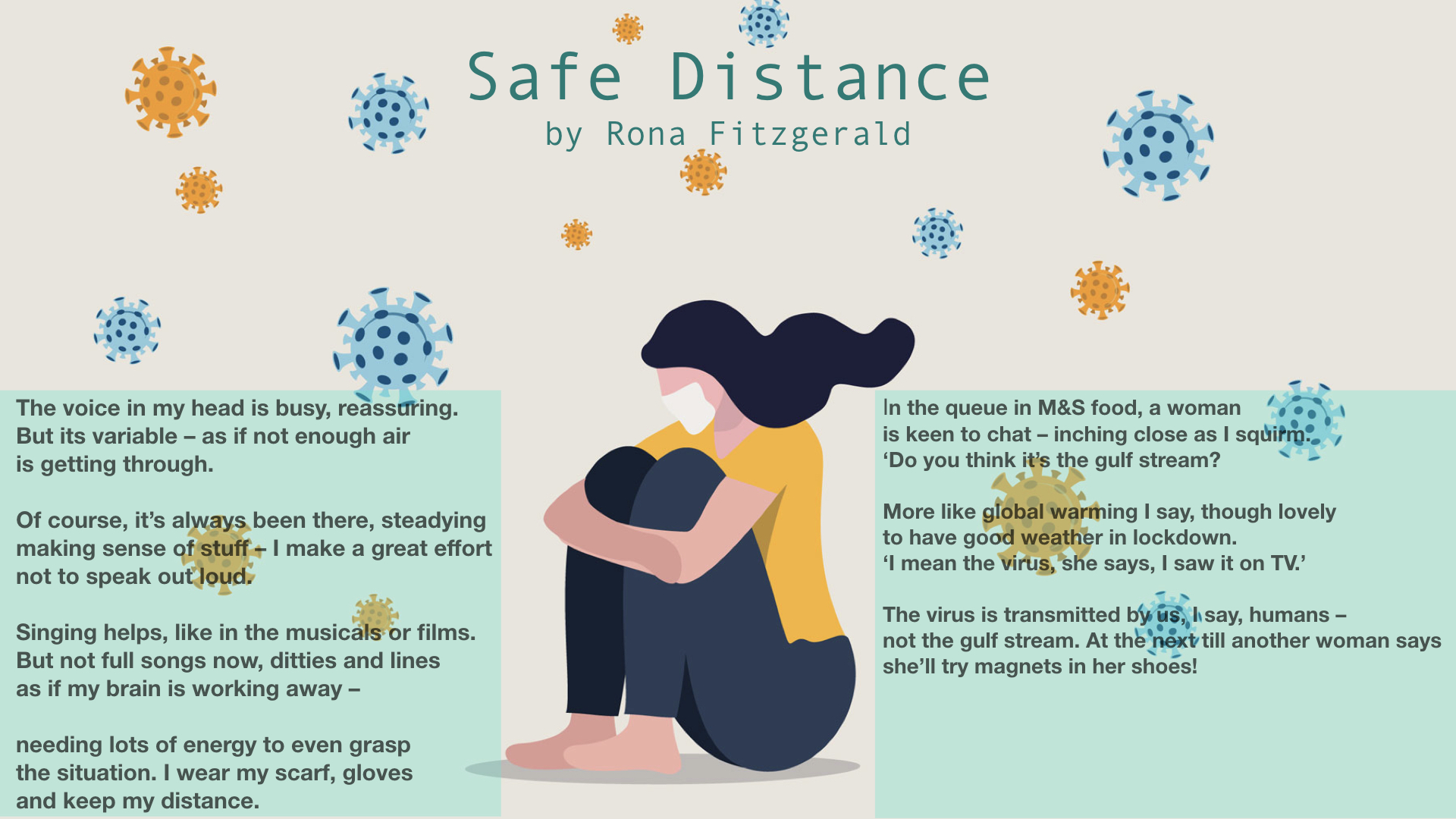 Rona Fitzgerald’s poem, ‘Safe Distance‘ resonated with me. I think it captures the struggle to stay rational and calm even when there’s no firm ground to stand on.