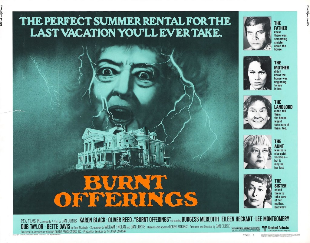 ‘Burnt Offerings’ was made into a movie in 1976 starring Oliver Reed and Karen Black. Judging from the trailer, it wasn’t a particularly subtle adaptation. It seems to have gone for shock rather than a growing menace and dread.