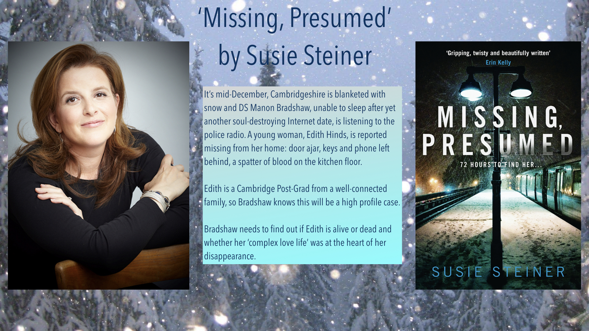 In 2016, Susie Steiner published her second novel ‘Missing, Presumed’, the first book in a trilogy about Detective Sargeant Manon Bradshaw. The book was selected by the Oprah Book Club in the US and Richard and Judy’s WHSmith Book Club in the UK and was nominated for Barry Award for Best First Novel (2017), and the Theakston Old Peculier Crime Novel of the Year Shortlist .