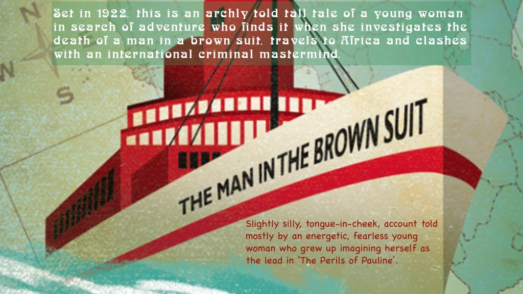 ‘The Man In The Brown Suit’ was an amusing distraction with a likeable main character, an improbable plot, exotic locations and some wonderful views of how travelling from England through Africa worked when you were English, white and wealthy.