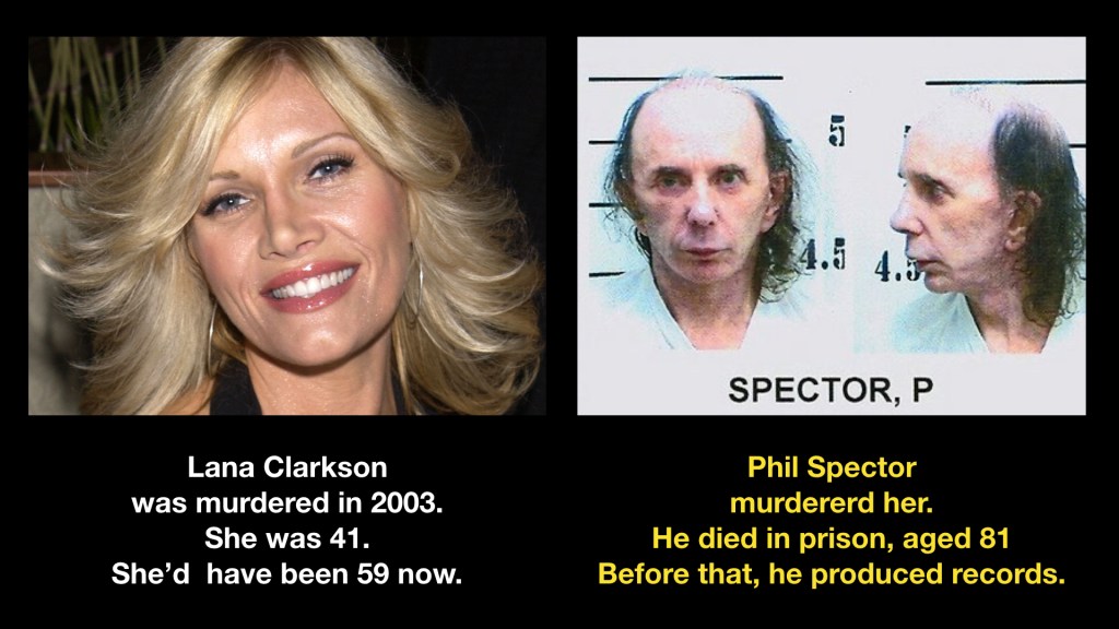 Her name was Lana Clarkson. He murdered her in 2003. He was convicted in 2009 and sentenced to 19 years. He died of COVID-19 in the prison hospital at the age of 80 with seven years of his sentence still to serve.