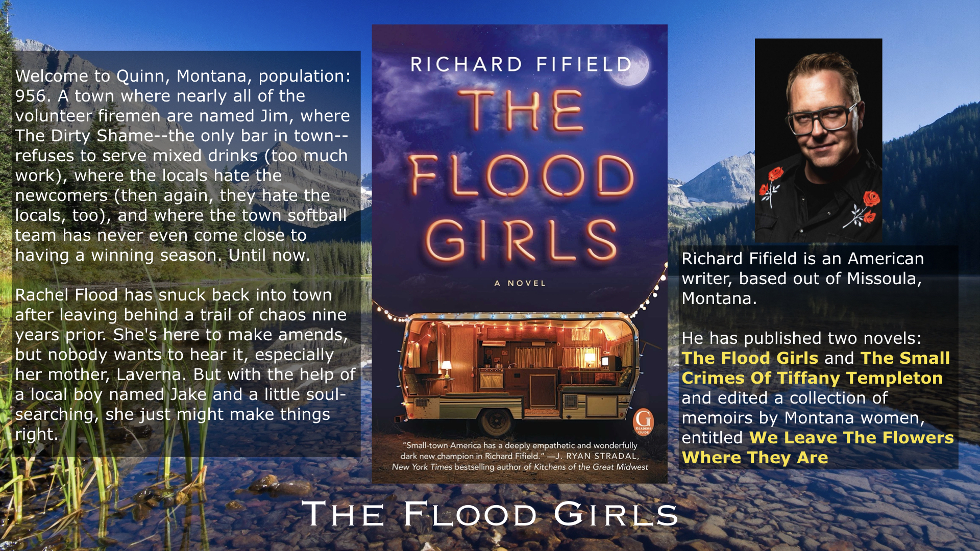I’m hoping that Richard Fifield knows small-town life well enough to show both sides of the experience. I’m up for a bit of humour and some larger than life characters but I want to go beyond a ‘Lake Wobegone’ folklore approach and meet the real people. The ones with the long memories, who know how to hold a grudge as well as the ones who live a more flamboyant life.