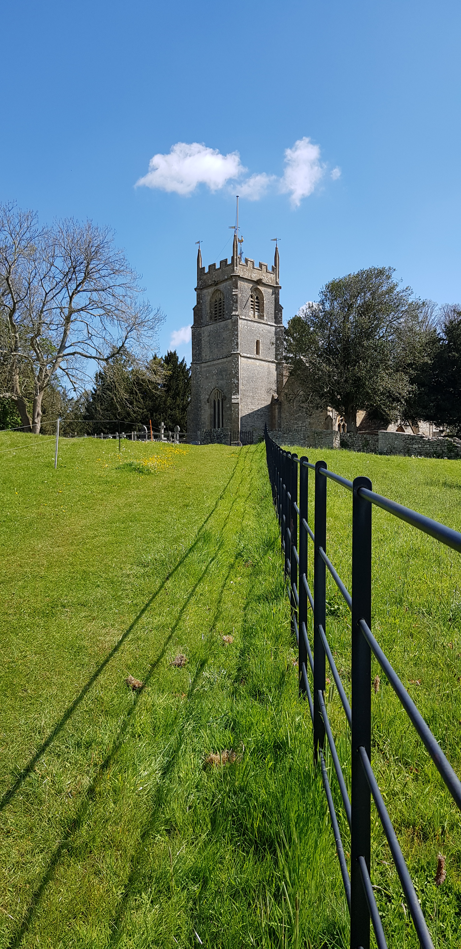 As you move around the church, the land falls away and you realise that you’re on a hill with one of the farmhouses below you.