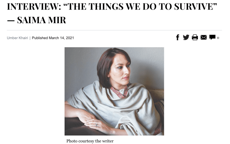 ‘Samia Mir is a well-known journalist. ‘The Khan’ is her debut novel. In a recent interview ‘The Things We Do To Survive’, Saima Mir explains what her book is about, saying.:
