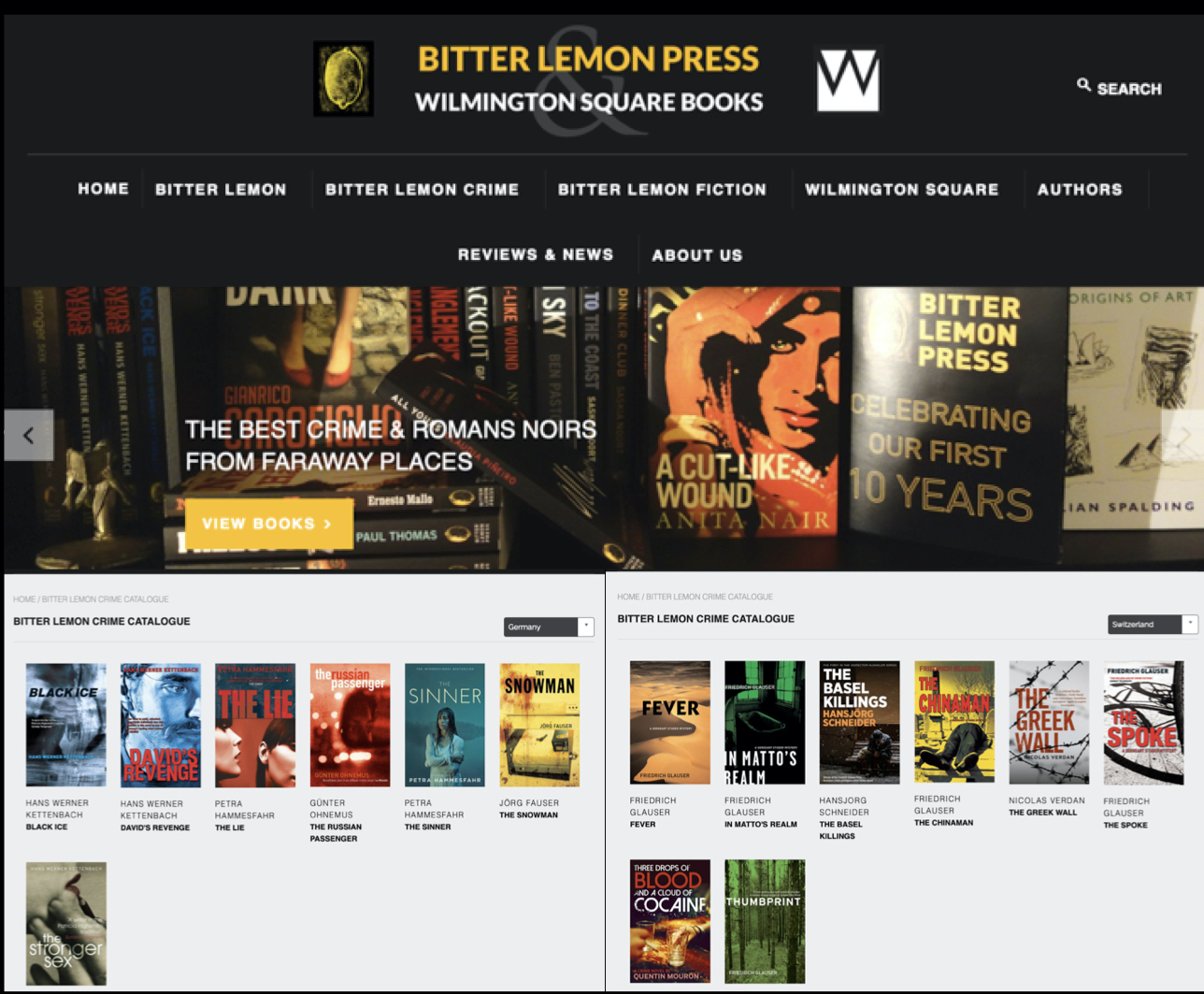 You can sort their catalogue by country, with twenty-four countries on offer, including four English-speaking ones. They offered me eight books from Switzerland and seven from Germany.
