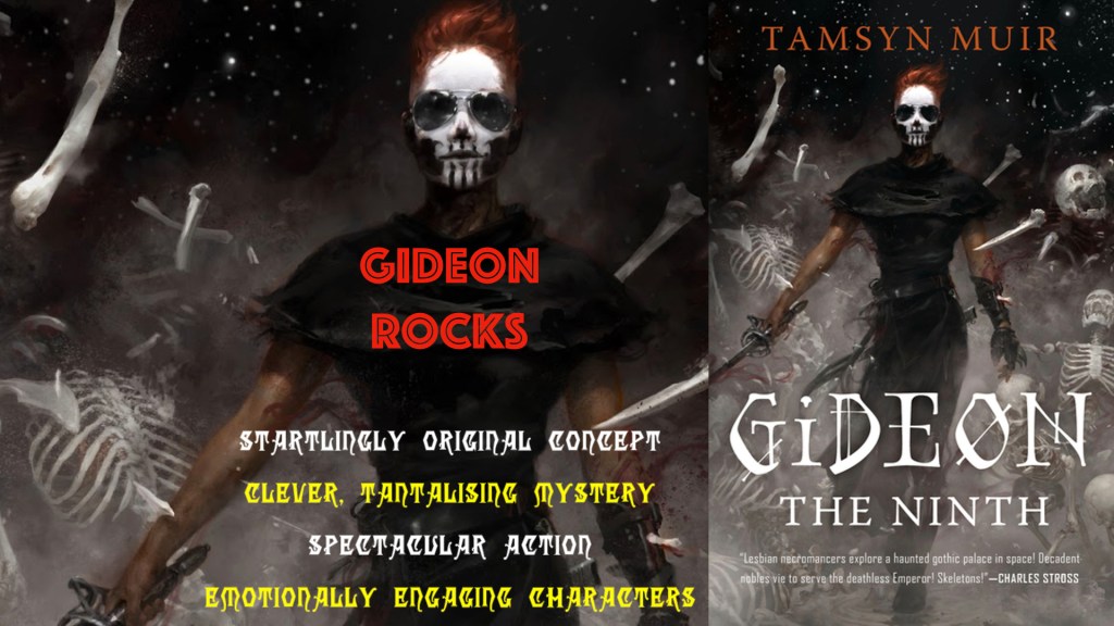 I strongly recommend the audiobook version. If you surrender to Tamsyn Muir’s text and Moira Quirk’s superb narration, this whole book is a rush that will make you laugh and cry, keep you eagerly turning the pages and constantly reassessing what’s going on. Most of all it will burn Gideon into your memory.