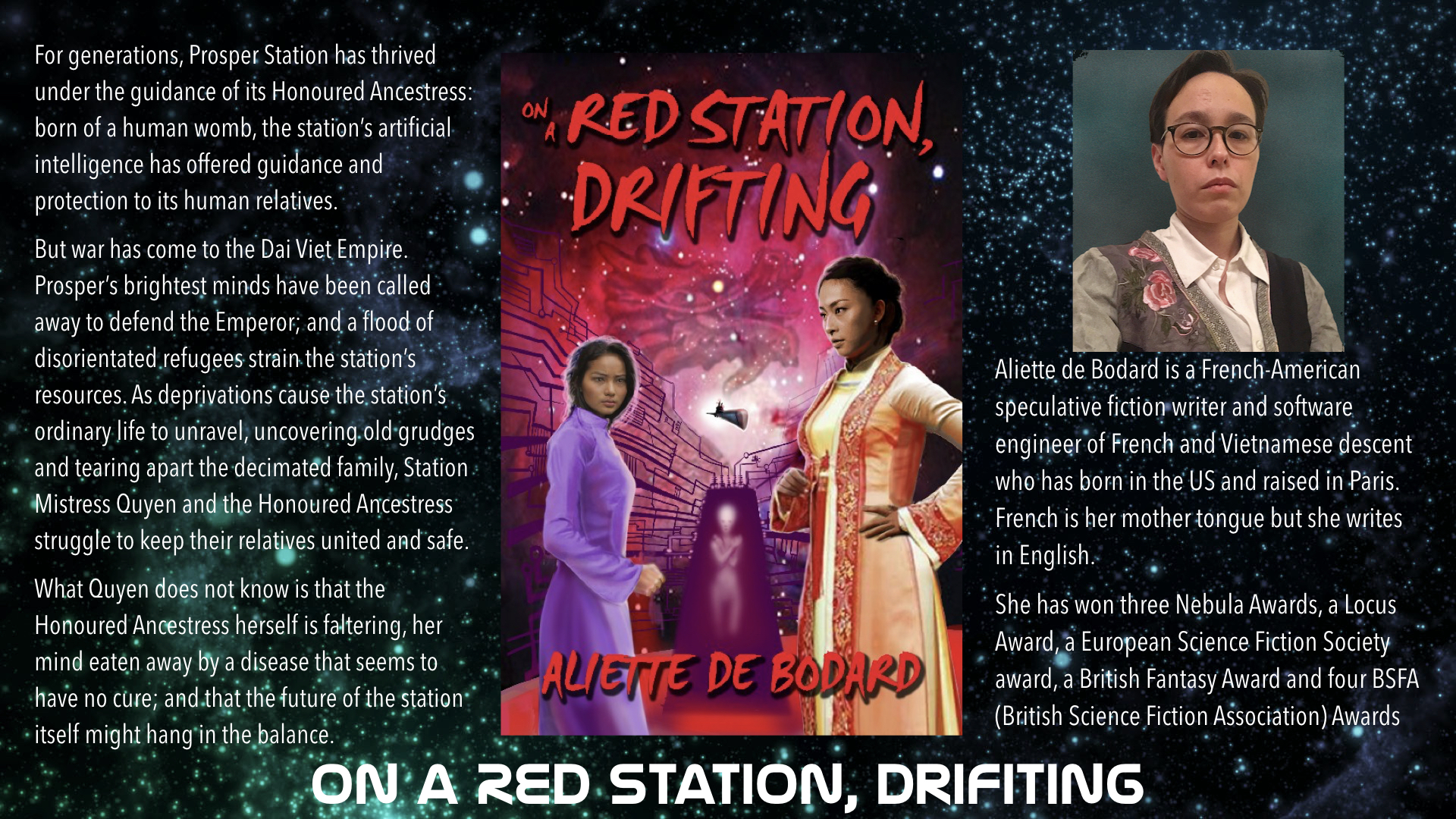 ‘On A Red Station, Drifting’ is only 106 pages long but I’m expecting it to pack a punch. In May, I read Aliette De Bodard’s 2018 novella, ‘The Tea Master And The Detective’ and was deeply impressed by how much world-building, character development and plot Aliette De Bodard delivered.