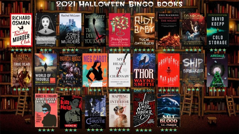 So now my Bingo Card is Blacked Out and my Halloween Bingo Library is crammed full of good books, many of which I have still to write reviews for.