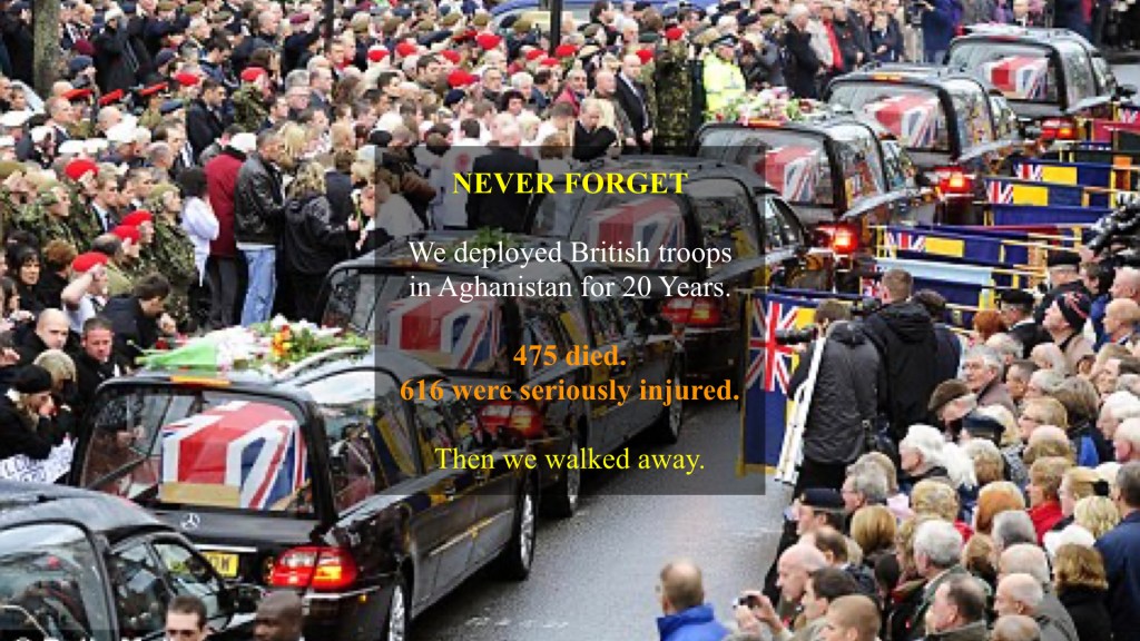 It’s Armistice day today. A time for remembering our military dead. Today, I’d like to remember the British armed forces personnel who died or were seriously injured in the twenty years that we deployed troops in Afghanistan.