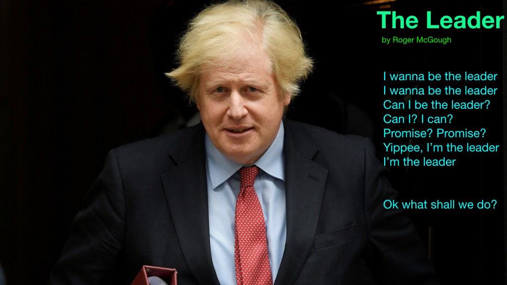 The first time I read Roger McGough’s poem, ‘The Leader’, many years ago, I grinned, called him a smart-arse and moved on. It was just a bit of fun. An exaggeration to make the point that so many politicians over the years have been motivated by an ambition to be The Leader rather than by a need to lead people to a particular place. It was scouser satire – tart, smart and snarky – a bit of a laugh.