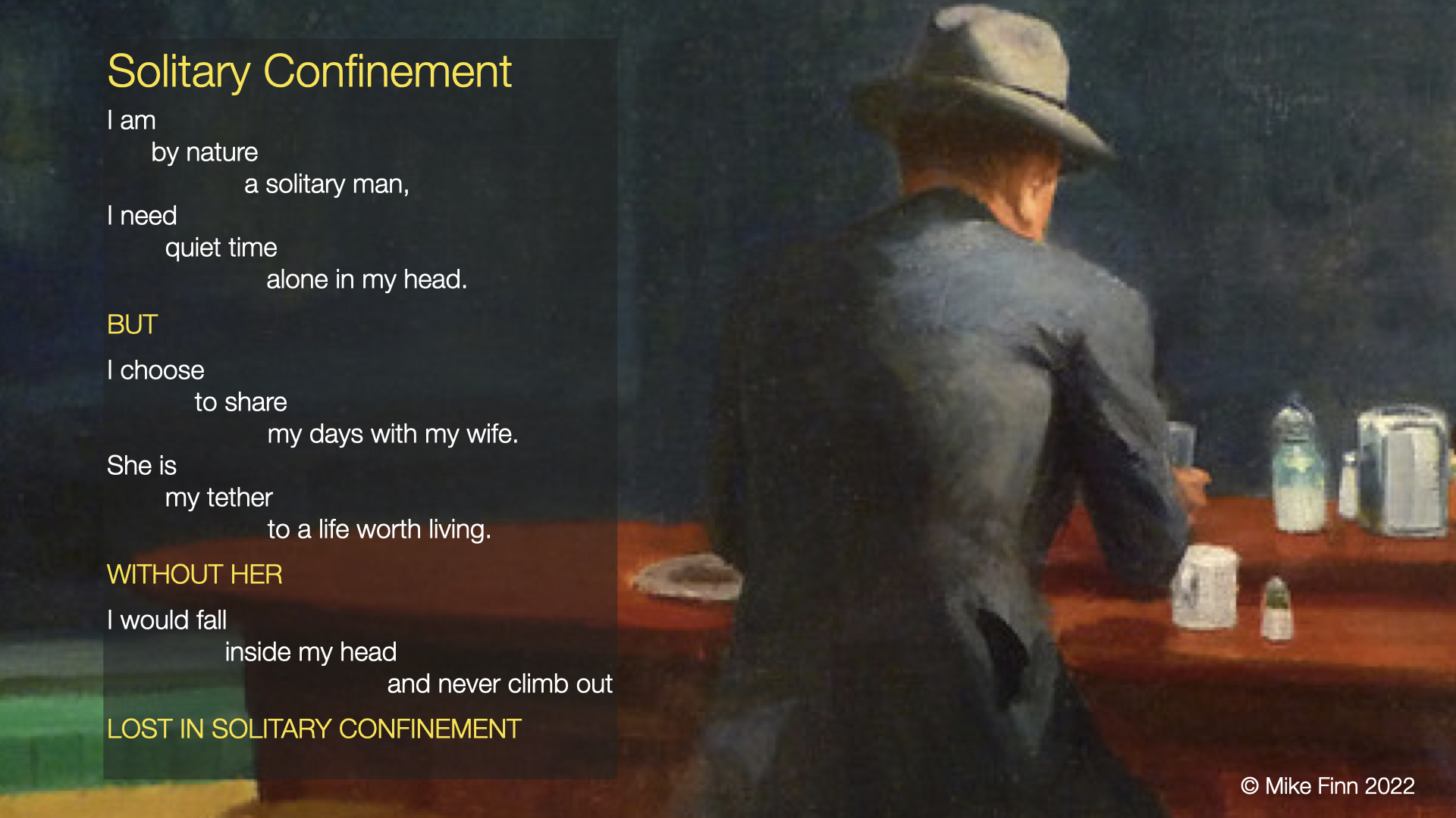 That got me thinking about how solitary I am and what it is that prevents me from slipping into isolation and loneliness.