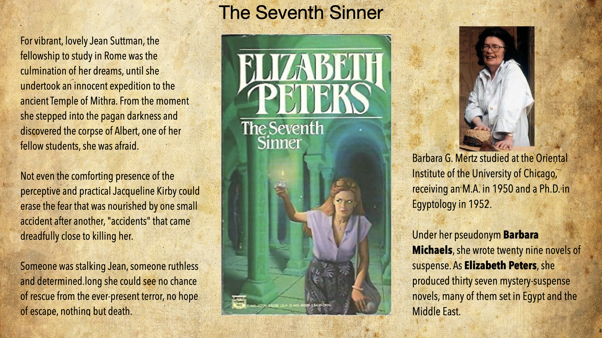 ‘The Seventh Sinner’ by Elizabeth Peters (1972)