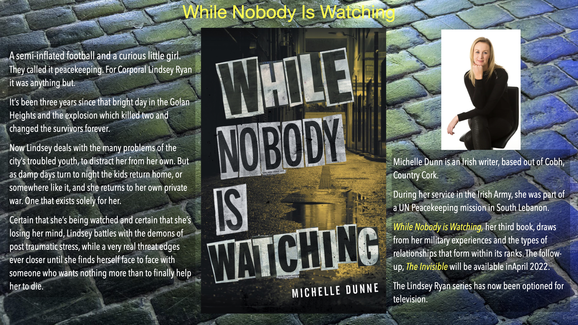 I’m hoping that Michelle Dunne’s experiences as a Peacekeeper with the Irish Army will keep the novel real and that ‘While Nobody Is Watching’ will leave me eager to read the next book in the series when it comes out next month.