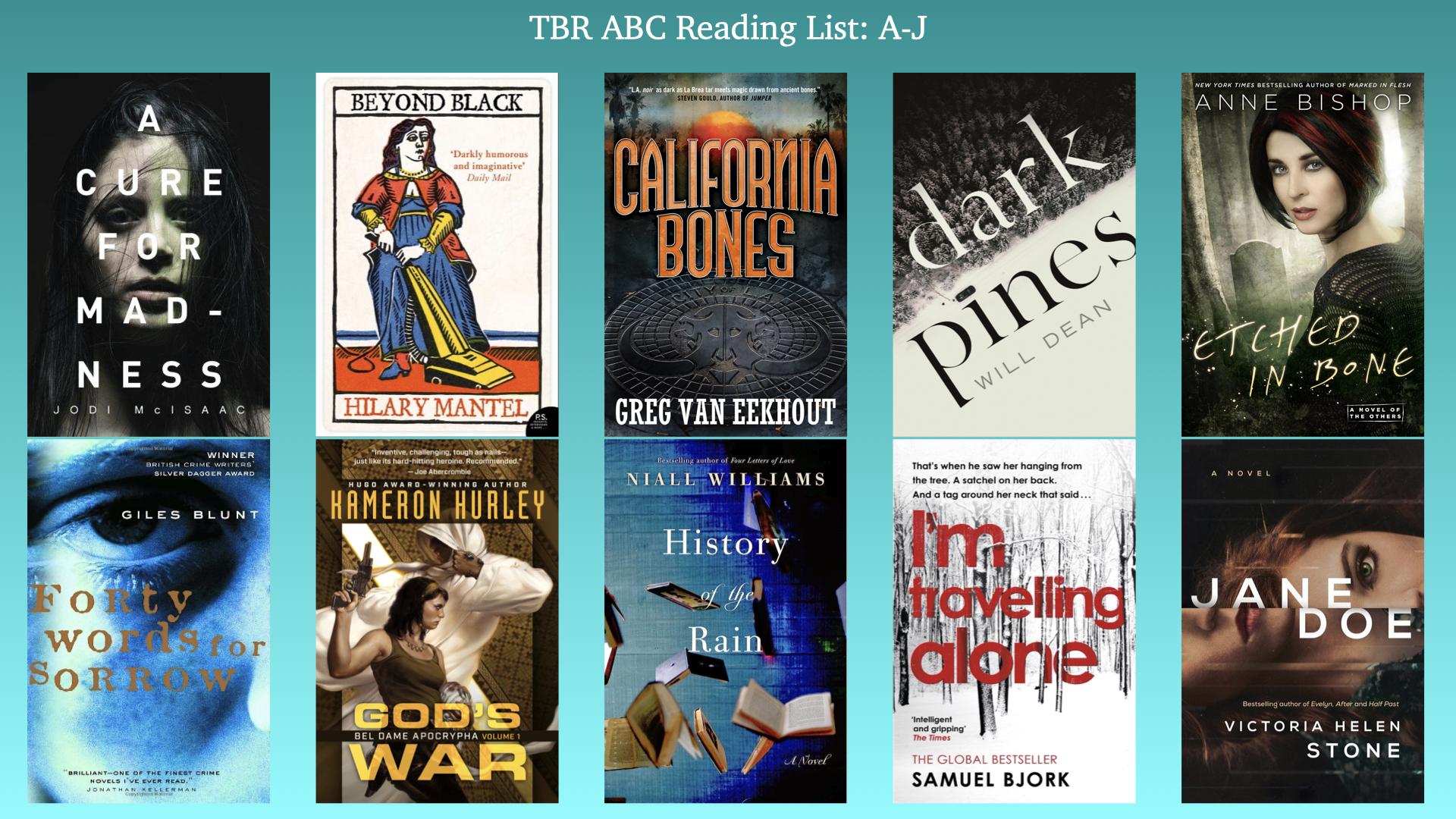 But I want to do more than that so I’ve decided to set myself a TBR ABC reading challenge: I’ve mined my TBR pile to find books with titles that start with each letter of the alphabet and I’m going to read my way through the alphabet by the end of 2022.