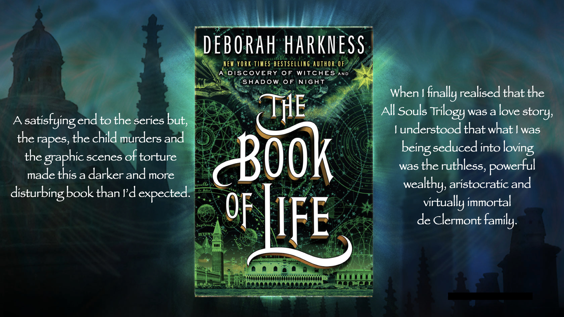 This was the book where Diana finally comes into her own. She’s in control of her power, she has children to protect and she’s determined to use the Book Of Life to bring down the Covenant that puts her family at risk. It did surprise me that, when Diana finally came into her power, she used it as if she had been born into the de Clermont family. She slipped on the wealth and entitlement of the de Clermont like a tailored jacket and became someone truly formidable. This is no longer the woman we met in ‘A Discovery Of Witches’. This is someone who, having finally understood that her options and abilities had been constrained by the power of the Congregation her whole life, took hold of her power and focused it on their destruction. It seemed to me that the various vampires and witches who had conspired to stop her along the way had had very good reason to do so and saw her more