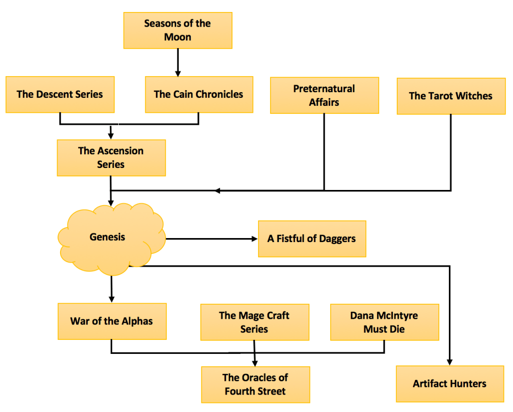 A while back, I bought the omnibus version of the Ascension Series. I didn’t realise I’d missed the first eight books until I opened ‘Sacrificed In Shadow’. I liked the opening scene but the publisher’s summary spoke about Elise Kavanagh as if I should know who she was, so I checked S M Reine’s site, got myself this roadmap and understood what I was stepping into.