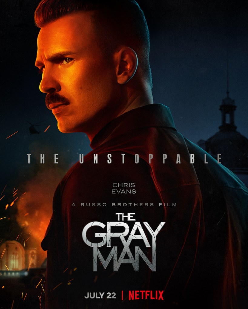 ‘The Gray Man’ movie is a boys club affair which puts our ‘I’m an assassin – but the good kind of assassin’ hero firmly into American superhero mode. It’s directed by the Russo brothers Anthony and Joe who delivered Captain America: The Winter Soldier, Captain America: Civil War, Avengers: Infinity War and Avengers: Endgame with Joe Russo also taking one of the writing credits and it stars Ray Gosling as the good guy and Chris Evans as the bad guy (maybe that the explains the moustache?)