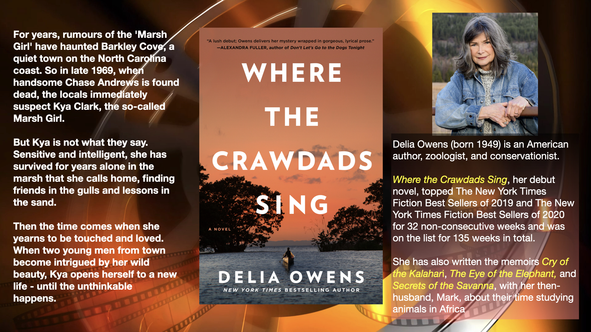 I’m intrigued by Delia Owens. There aren’t many authors who publish their debut novel when they’re sixty-nine. Even fewer who do it after having already had a lifetime working as a naturalist working in a continent not her own. When this became a phenomenal success, her agent must have felt that they’d pulled off one of the publishing coups of the decade.