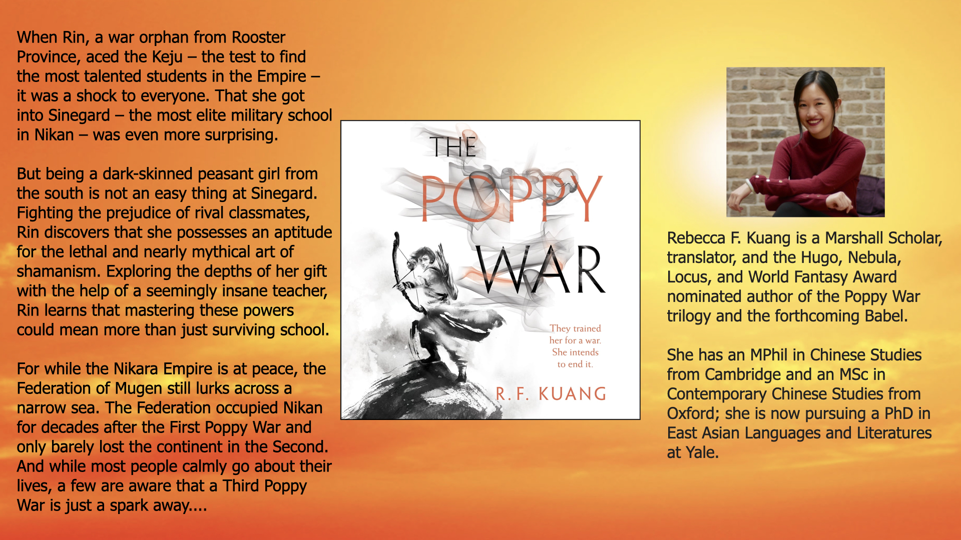 What appeals to me most about ‘The Poppy War’ is that it’s a fantasy based on a good understanding of the brutal realities of poverty, war, and conquest. I’m hoping it will be exciting and imaginative without romanticising its content.