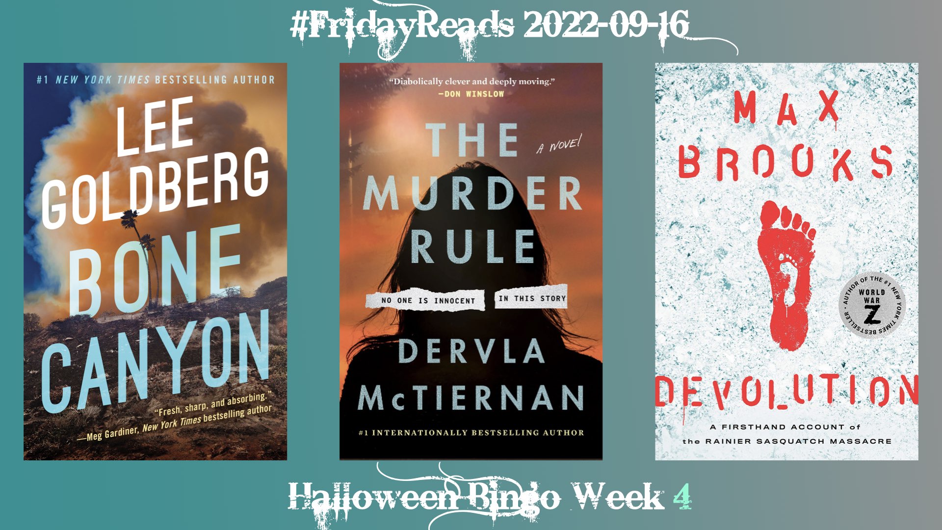 At the start of Week Four of Halloween Bingo, I’ve read books for 8 of the 25 squares, including 3 of the 5 Called squares on my card.