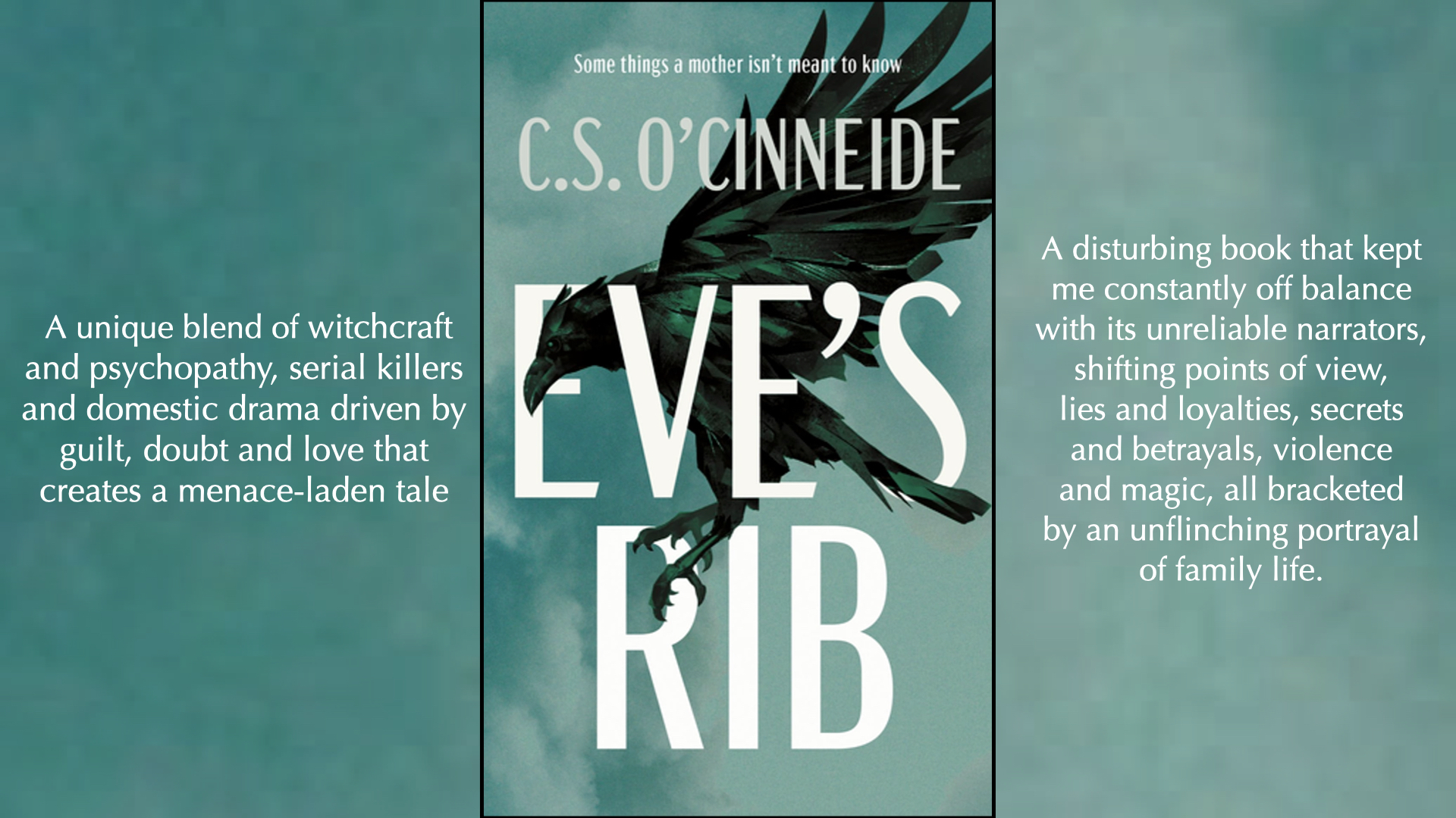 ‘Eve’s Rib’ works perfectly well as a standalone novel but I hope that there will a sequel. I don’t think I’m done with Eve and Abbey yet. They have one of the most compelling and plausible and fraught mother daughter relationships I’ve come across. Richard? Yeh, him I’m done with.