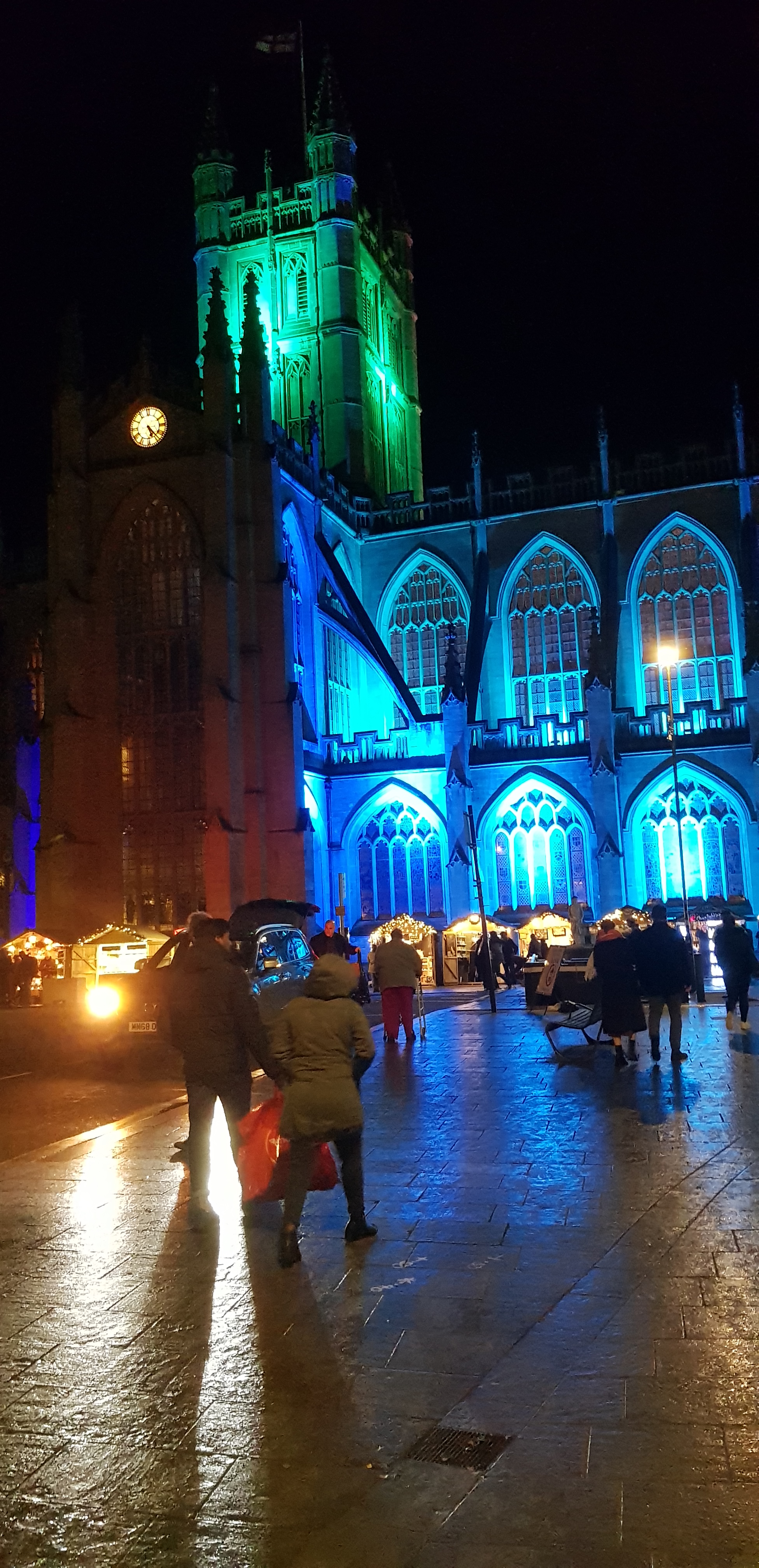 Then the pandemic happened and the life we’d all taken for granted blinked out of existence. By December 2020, even according to the carefully limited official numbers, we had had 72,000 people in England die of COVID and more than 2,000,000 people had been infected. We had all spent a year living with isolation and loss. A vaccine had just become available in December 2020 but hadn’t been deployed widely enough to offer protection to any but the most vulnerable. As we approached Christmas, Bath was in Tier 2 Lockdown. Most businesses were closed and the streets were eerily empty. The city still put on a show, lighting up the buildings, but there were few people around to see the results. Here are some of the pictures that I took in 2020.