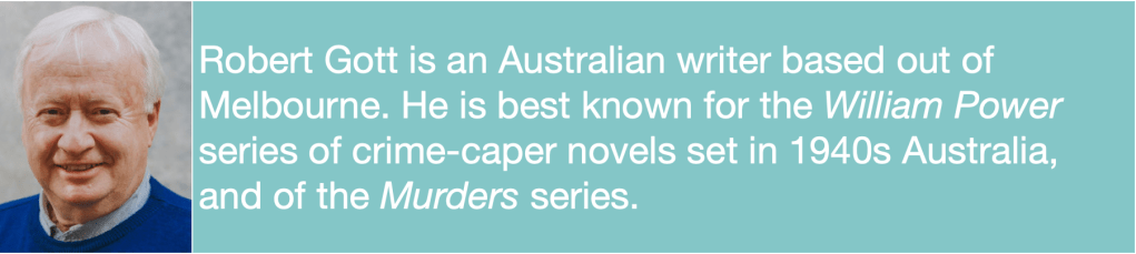 I admired Robert Gott’s storytelling style. The pacing works, moving the multiple storylines along in a way that kept me interested and made me speculate on how they would come together. Events are described in a slightly detached way that keeps the brutality from being glorified but still produces lots of tension edged with fear.