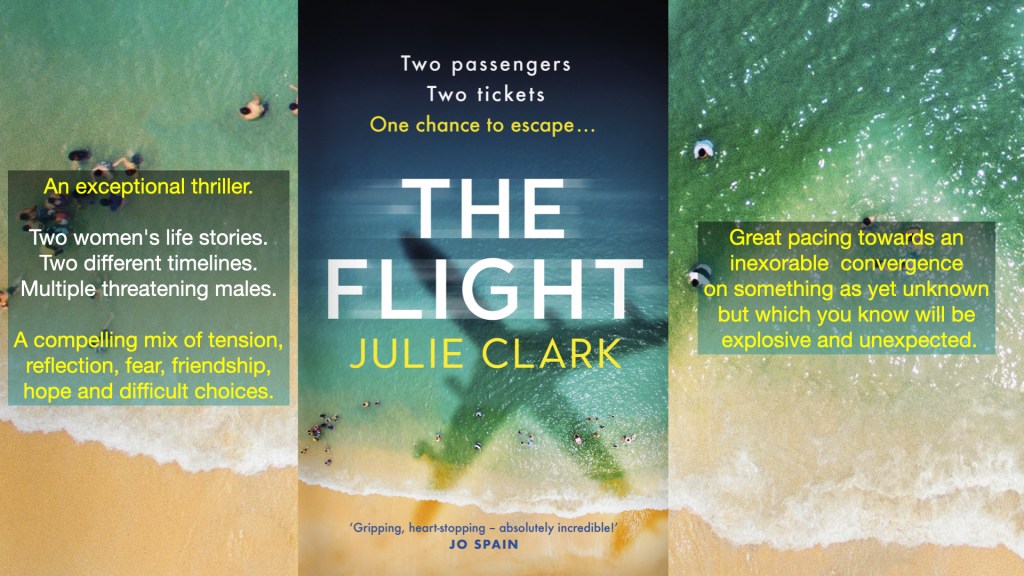 ‘The Flight’ is a masterful thriller that handles multiple timelines and points of view flawlessly while keeping the tension high, the reader guessing and the focus on two believable women characters who she makes you care about.