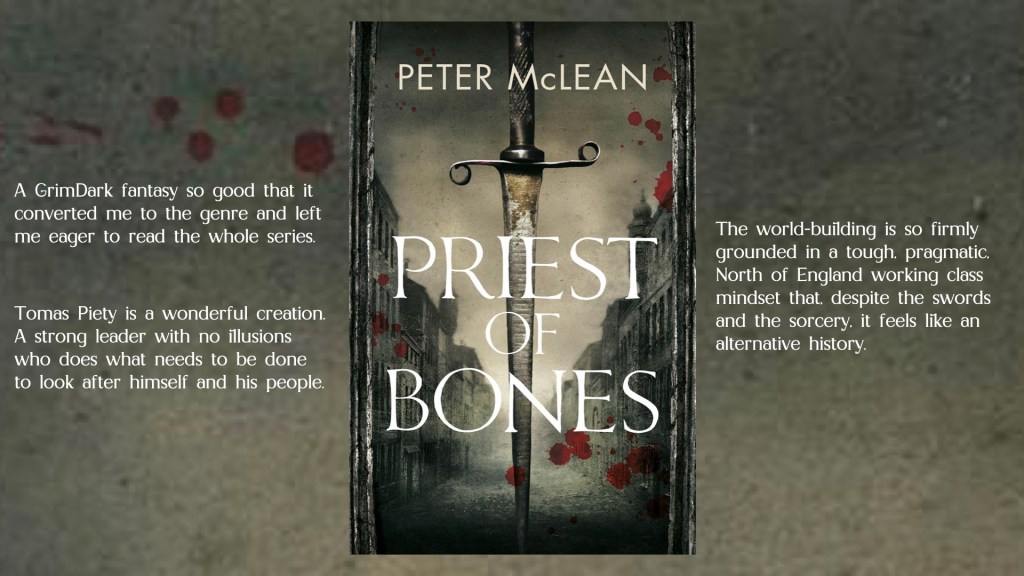 ‘Priest Of Bones’ was my first taste of the GrimDark genre and I was hooked at once. I’ll be there for the rest of Tomas Piety’s wild ride.
