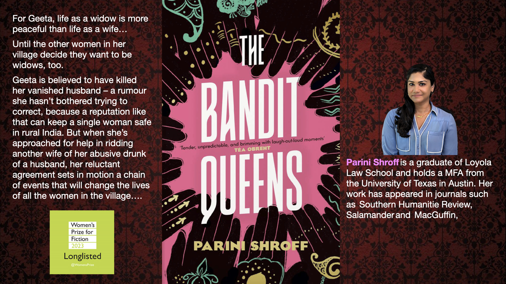 ‘The Bandit Queens’ is a rare kind of book: accessible, entertaining, truthful and thought-provoking. It’s a remarkable achievement and an astonishing one for a debut novelist. I hope that Parini Shroff continues to write. I’ll certainly be there to buy her next book.