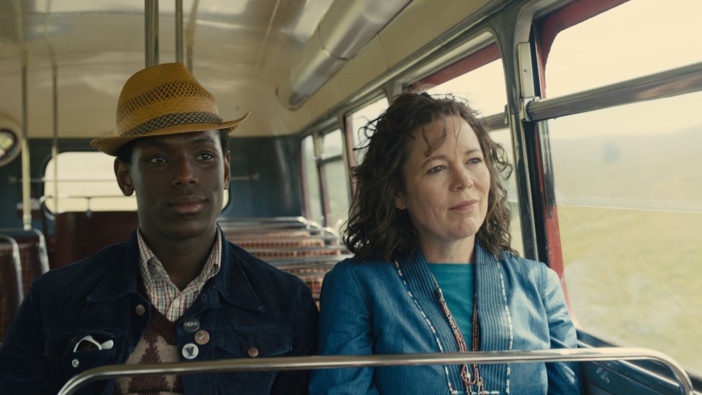 There is also a lot of hurt and hate and pain in the movie. Olivia Coleman, the Deputy Manager of The Empire, suffers from mood swings and is trying to cope by taking Lithium, which leaves her feeling numb. Colin Firth, her older, married, boss, demands joyless sexual services from her which she feels pressured to perform. Mark Ward, a newly recruited Cinema Usher, is the son of a nurse who came over to England from the Caribbean as part of the Windrush generation. He’s taken the job after failing to get into university and he is very aware of the growing racial violence in England.