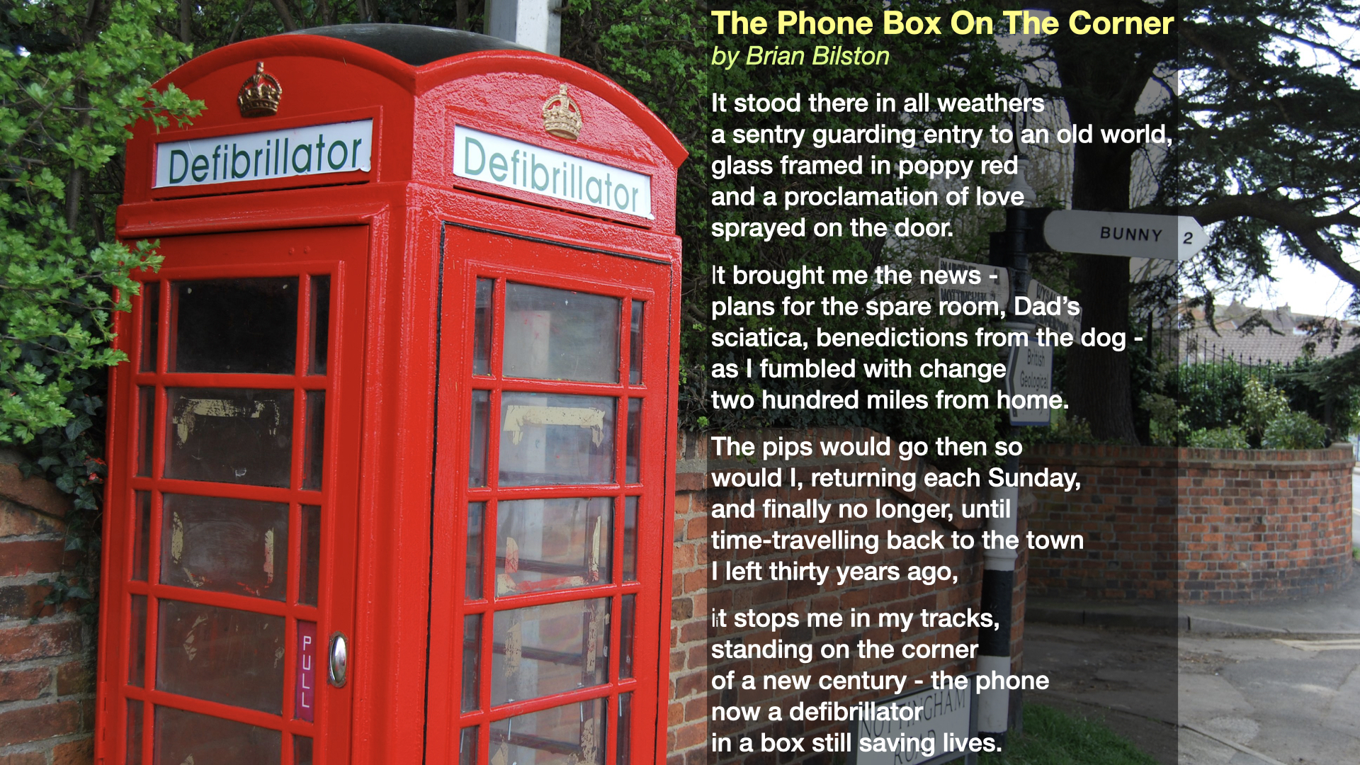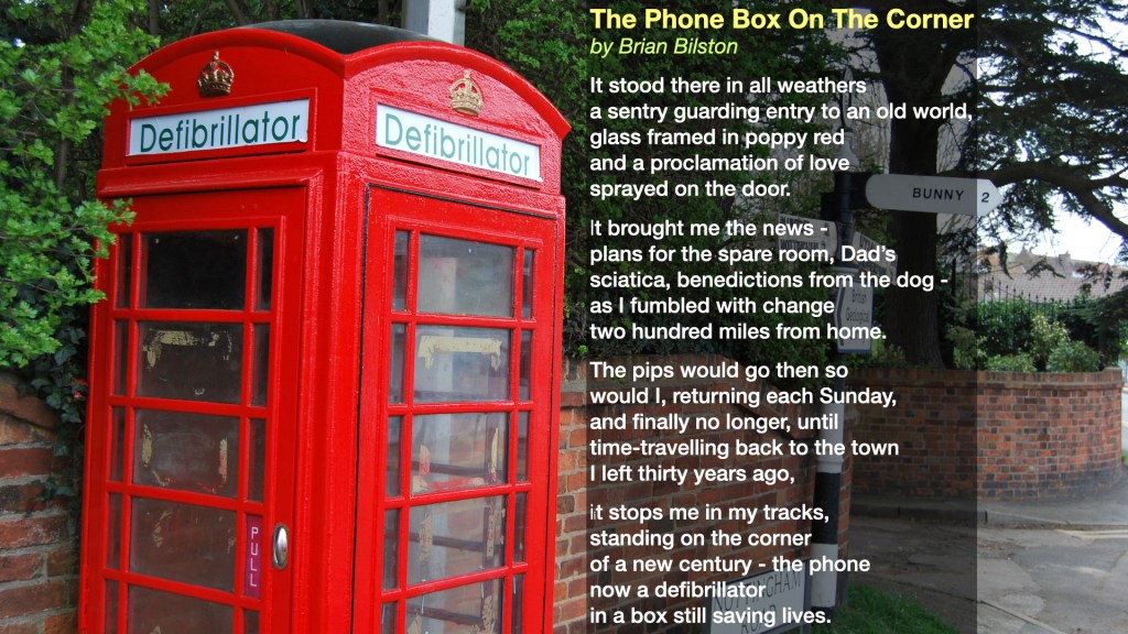So here’s ‘The Phone Box On The Corner‘ by Brian Bilston which I think captures the emotion of times past and acknowledges the changes with a smile.