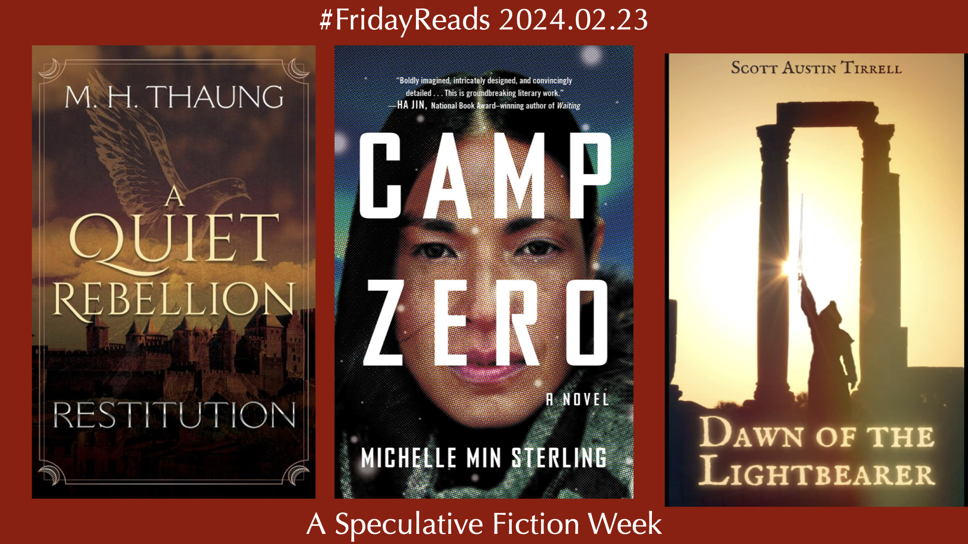 #FridayReads 2024-02-23 – A Speculative Fiction Week -‘A Quiet Rebellion: Restitution’, ‘Camp Zero’ and ‘The Dawn Of The Lightbearer’