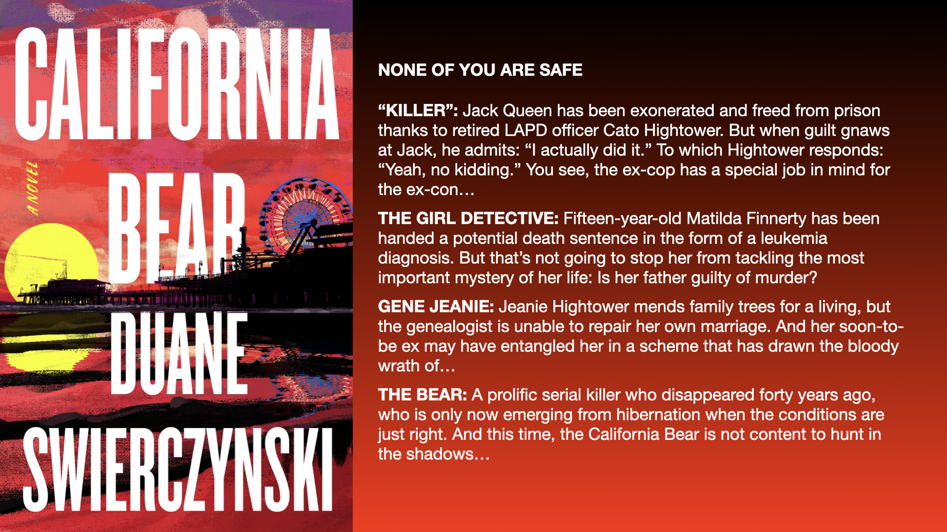 Duane Swierczynski is the author of several crime thrillers, including the Shamus Award-winning Fun and Games, the first in the Charlie Hardie series, as well as the Edgar-nominated and Anthony Award-winning Expiration Date.