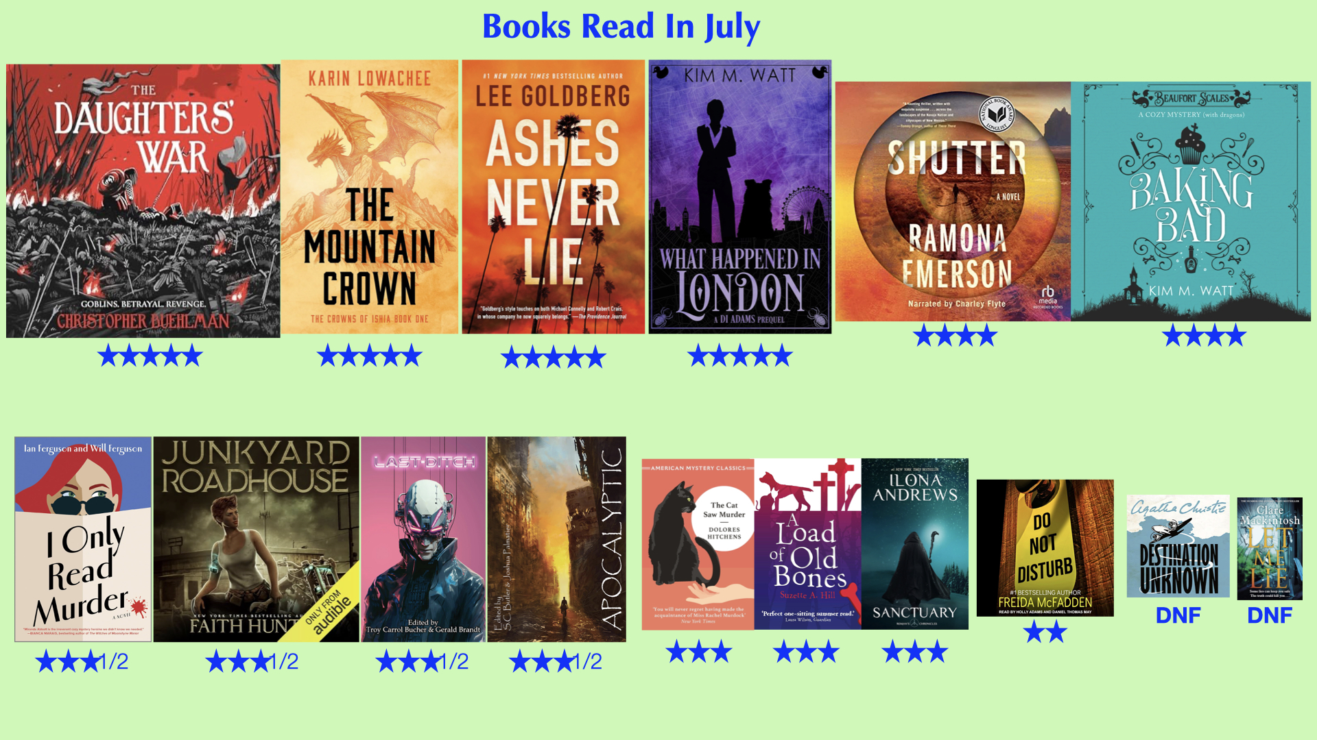 July was a fun reading month, partly because I set goals aside and read whatever I fancied, almost all of which were books that I added this year.