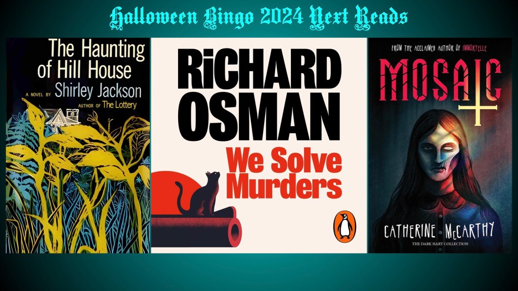 I read my first Shirely Jackson book, ‘Dark Tales‘ earlier this year and promised myself that I’d read her classic novel, ‘The Haunting Of Hill House‘ during Halloween Bingo. I’m using it for the Ghosts and Hauntings square. The audiobook version of Richard Osman’s new novel was published on 12th September so I scooped it up for Halloween Bingo. I’m using it for my Raven square. I picked up ‘Mosaic‘ after someone else reviewed it for Halloween Bingo. It sounds fresh and quite creepy. I’m reading it for my Gothic square.