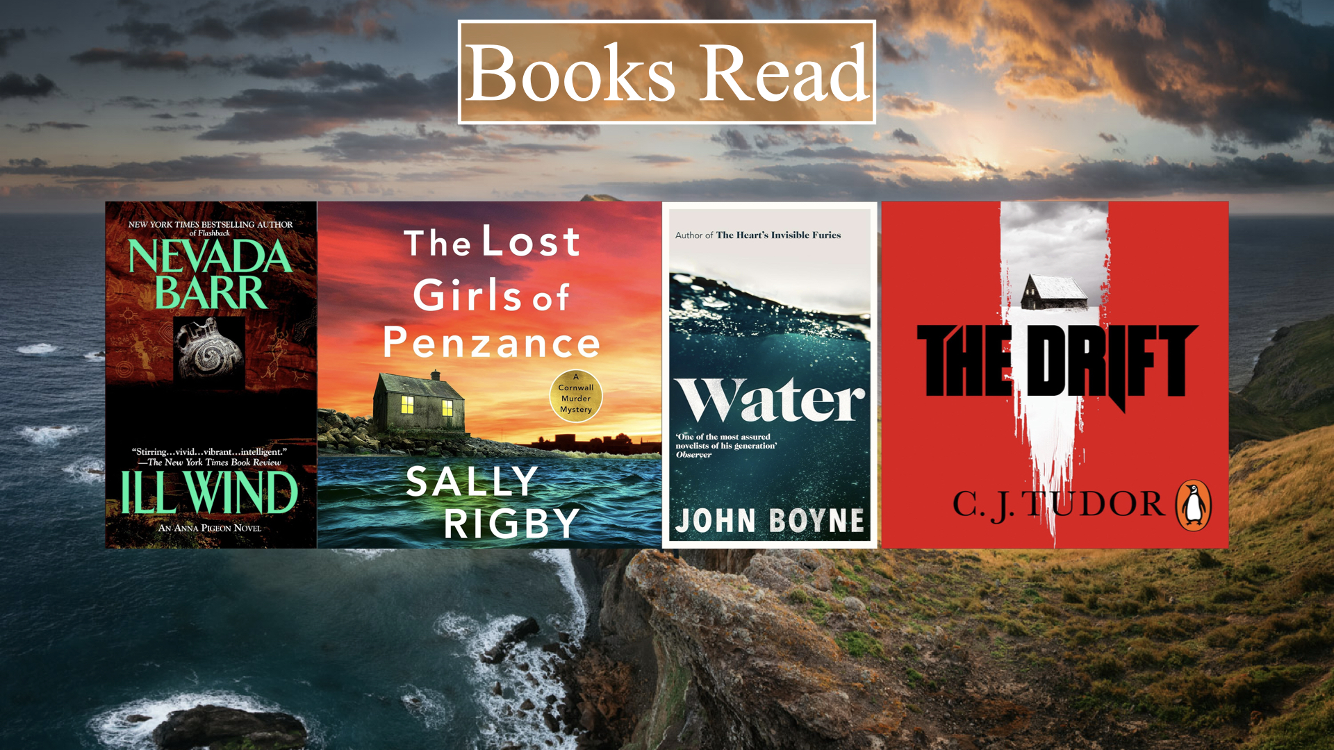 M y best read this week was ‘Water’ a beautuifully written mainstream novel set in Ireland. The other books provided the entertainment that I expected of them.I read a British Police Procedural, another instalment of Nevada Barr’s Anna Pigeon series and a dark piece of end-of-the-world speculative fiction by C. J. Tudor.