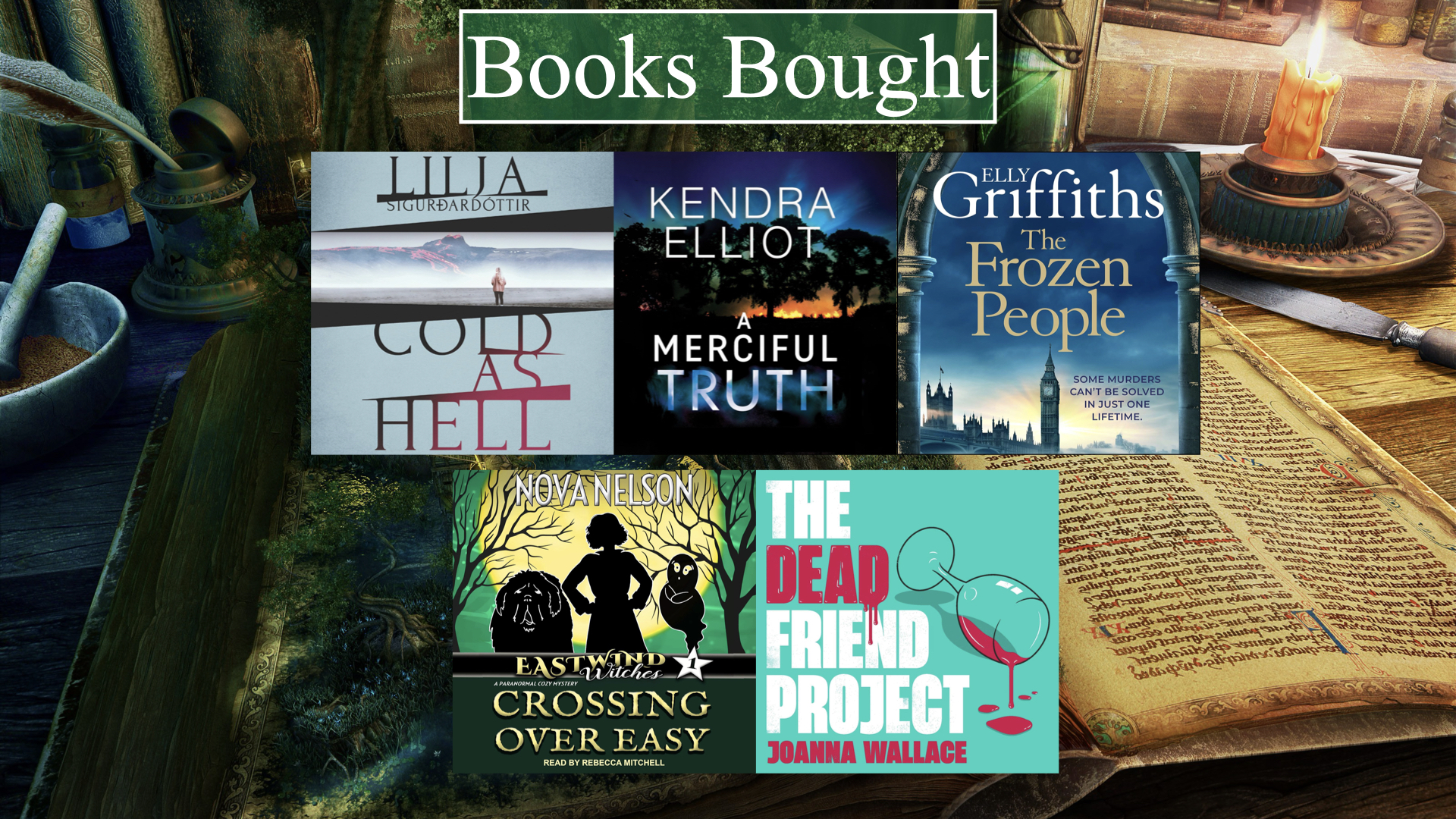 I bought five books this week. One book continues an FBI series. Three of them start new-to-me series: an Icelandic Noir, a time trave mystery and a cozy supernatural mystery. The fifth book is the second novel by Joanna Wallace.
