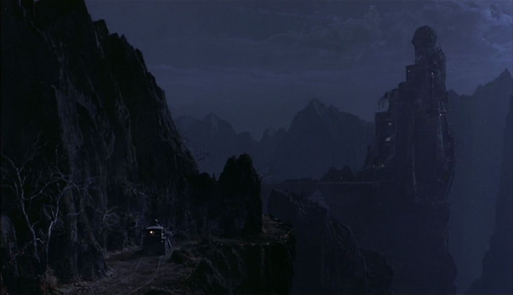Harker transfers to the Count’s carriage as night descends. There is a splendid scene when the carriage is surrounded by a circle of wolves that fill the horses with fear. Then there is the arrival at midnight a the dark ruin of Dracula’s castle. I think this graphic captures the feeling of the scene perfectly.