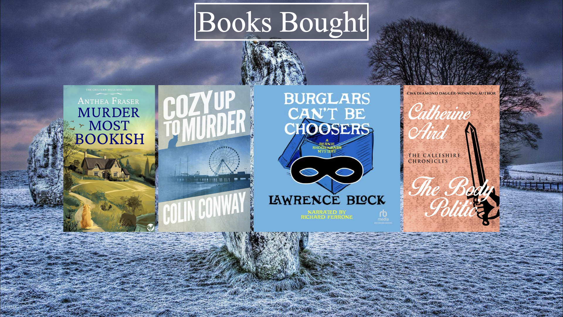 This week, I’ve been stockpiling mysteries of different flavours. I bought two contemporary cozy mysteries and two books from Twentieth Century series.