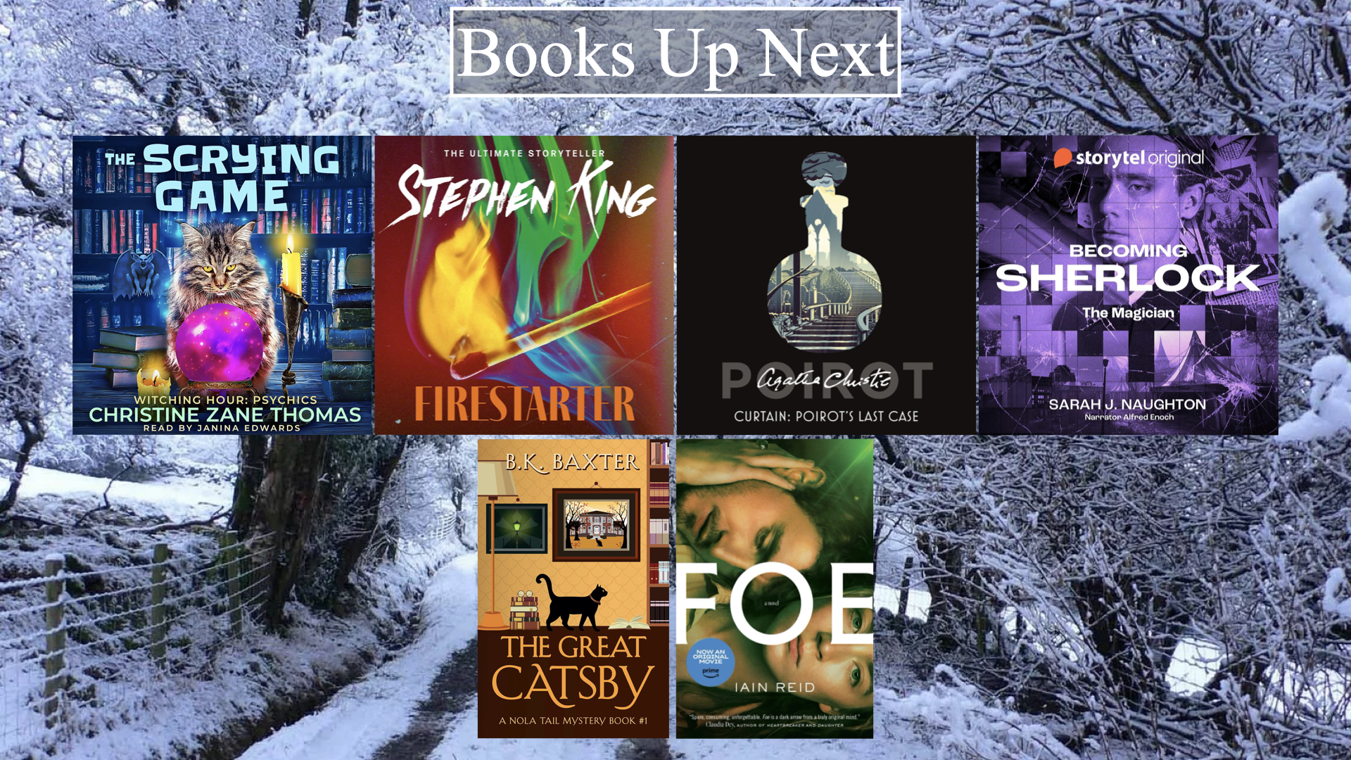 I’m going to on vacation for the next week so I’m hoping to get more than my average amount of reading done. I’ve picked out five books: a cat-centric cozy mystery, an early Stephen King novel, the penultimate Agatha Christie novel, the final novel in a Sherlock Holmes with a twist trilogy and a Science Fiction psychological thriller that was recently made into a film.