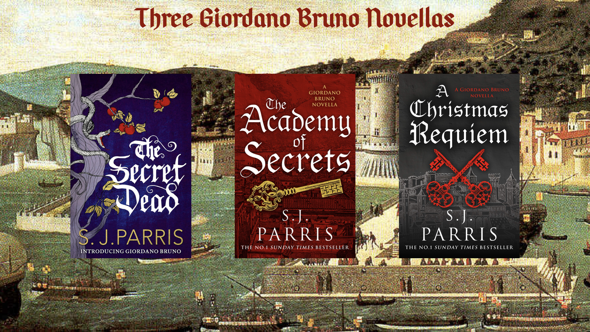 S. J. Parris’ seven-book series of 16th Century historical mysteries, built around the real-life figure of Giordano Bruno, an Italian philosopher, poet, alchemist, astronomer, cosmological theorist, and esotericist, has been recommended to me repeatedly, so I decided to sample the series by reading three novellas , written as prequels to the first book, starting when Giordano Bruno first entered the Dominican Order at the monastery of San Domenico Maggiore in Naples in 1566.